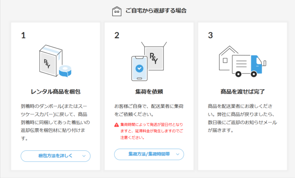 【PR】R&Y Rental 今回はスーツケースレンタルのサイトのご紹介です。様々なブランドのスーツケースを取り揃えられており、在庫数も50000個以上だそうです。往復送料無料、即日発送、無償保証のサービス付きなので初めてレンタルをするお客様にもご好評をいただいているそうです。サイトにはサイズ・宿泊日数から旅に合うスーツケース、機内持ち込みサイズや3辺合計158㎝最大サイズのスーツケースを探すことができます。また、自分の好きなブランドからやスーツケースの機能からも探すことも可能です。・旅行に行くけど、どんなスーツケースがあってるのかわからない・様々なブランドから選びたい・高品質のスーツケースをお探しの方こんなかたはいらっしゃいませんか?ぜひ下記のボタンからサイトをチェック! レンタルはこちら 当サービスの特徴 1 全てのスーツケースが往復送料無料※沖縄・離島の場合は別途送料がかかります。2 オンライン割引当サイトからご予約された方はスーツケース・旅行用品が10%OFF、会員登録していただくとさらに5%相当の次回以降にご利用いただけるポイントがサービスされるそうです。3 価格の保証当サイトが扱っているスーツケースをお客様のお求めやすい価格を目指しているそうです!4 即日発送ご希望のスーツケースの在庫にもよりますが、平日15時・土曜正午までにご注文を確定された場合、即日発送・最短翌日にお届けとなるそうです。日曜日・祝日の場合は翌営業日の発送。翌日配送のエリアがありますので下記の画像をご確認ください。 5 決済方法を選べるクレジットカード 各種コード決済キャリア決済コンビニ払い宅配電子マネー決済宅配代金引換 6 補償が充実スーツケースは保険会社の補償制度に加入しているそうです。保険料込みのレンタル料のため、万が一、スーツケースの破損事故等に遭われても無償で対応していただけるようです。7 カスタマーサポートお電話でのご注文だけでなく、レンタルの流れやスーツケースの特徴や違い、スーツケース到着後のご使用方法などのご質問・ご相談も受け付けています。スーツケースに精通したスタッフが丁寧にご対応させて頂きます。8 スーツケースの取り扱い数・在庫数の多さ国内外の様々なスーツケースを2000台以上取り扱っているそうです。長期休暇の旅行や、修学旅行・社員旅行などの団体様もご対応可能だということです。また、全種類TSA LOCK (TSAロック)を標準装備しているため、盗難予防、中身の保護など安心してお使い頂けます。当サイトのスーツケースは、国内の正規代理店から最新商品をレンタル商品として貸し出しております。レンタル専用品ではございませんので、購入前のお試し利用にも最適ですね! 9 品質管理スーツケース用の全自動洗浄機にて機械洗浄を実施後、オゾン発生機により消臭・滅菌処理を行います。一部の商品においては、ニオイセンサーにて消臭の確認を行います。また、最後に抗ウイルス・抗菌・消臭スプレーで抗菌・消臭加工をし、お客様のもとに届きます。レンタル商品ご返却後は、スーツケース検品・修理部門がネジの緩みや破損の有無に関して品質管理・必要に応じて補修を行います。発送前は、スーツケース清掃・出荷部門が同様の品質チェックを行い、2重チェック体制で検品漏れを防止しているそうです。10 配送体制年間10万個以上のスーツケースの出荷を可能にするため、ハンディーターミナルによる出荷精度と、品質管理体制を誇る「物流センター」を、岐阜県に展開しています。物流センターから様々な運送会社にお客様へ配送を行うことで、確実で迅速な物流体制を実現しています。また、梱包もスーツケースのサイズ別に合わせた段ボールを使用するため、運搬中の荷物事故の発生防止にも努めています。一部商品につきましては、サイズの関係上、スーツケースを入れる袋での梱包となる場合がございます。 ご利用の流れ ※レンタルの期間を選ぶ際、レンタル開始日は旅行2日前・レンタル終了日は旅行の翌日がおすすめだそうです。※商品が届きましたらお間違いないかご確認ください。※鍵の施錠・解除方法などの説明書を同梱しているそうなのでご確認ください。 ご返却の流れ 旅行に行く際、スーツケースだと荷物やお土産がたくさん入って便利ですよね。でも、いろんなサイズがあり、家にたくさんあると邪魔になってしまうことはりませんか?レンタルだと家もすっきりし、旅行の内容に合わせたサイズを選ぶことができますね! ・どのサイズを選べばいいかわからない・この機能は絶対に欲しい・使ってみたい指定のスーツケースがあるこんな方はぜひ下記のバナーをクリックしてサイトをチェック! 商材名 R&Y Rental運営者 A.S※当サイトはアフェリエイトプログラムを利用し宣伝目的で作成しております。