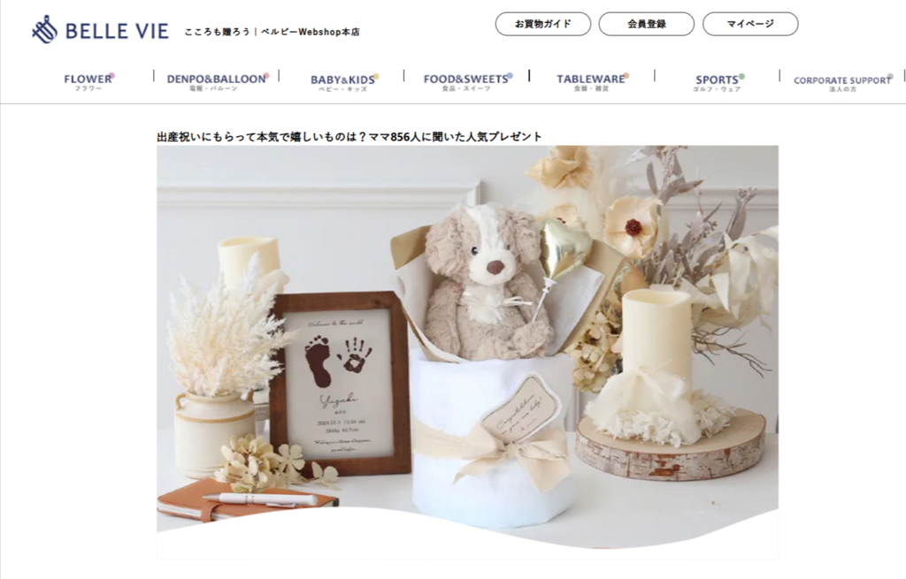 【PR】ベルビー本店 今回は、出産祝いの贈り物を販売しているサイトのご紹介です。ご家族やお友達、職場の人への出産祝いに良いものを送りたいけど何にしようと迷ってしまうことはありませんか?当サイトでは、ママたちの声から選び方やママに喜ばれるおすすめの商品を紹介しています。出産祝いでは定番のオムツケーキはもちろん、今トレンドのぬいぐるみや名前入りギフト、食器セット、木のおもちゃなど赤ちゃんの成長に寄り添うものや実用的なものなどを取り揃えているそうです。また、もらった方が受け取る商品を選ぶソーシャルギフトもあります!お祝いを渡したいけど、何を渡したらよいかわからない・好みがわからないという方におすすめです。サイト内には出産祝いに送られているアイテムのランキングや実際にママに聞いたアンケート(もらって嬉しかったもの・困ってしまったものなど)、出産祝いのマナーやメッセージの書き方なども紹介されています。また、男の子・女の子に贈るお祝いや2人目や双子に贈るお祝い、おしゃれなお祝いなど贈る相手に合わせたアイテムをピックアップされています。 ・初めて出産祝いを贈る方・おしゃれな出産祝いを贈りたい方・どんなものを渡したら良いか悩んでいる方・実際のママの声をもとにお祝いを考えたい方ぜひ下記のボタンからお祝いの贈り物を選んでみませんか? 出産祝いの購入はこちら ギフトのご紹介 おむつケーキ上記の画像の場合 10500円(税込)5000円台からのオムツケーキもございます。Sサイズからのオムツがおすすめです。種類がたくさんあり、迷ってしまいますよね。当サイトのおむつケーキは実用性とかわいさから貰った方に好評の声をいただいているそうです。 ソーシャルギフト上記の画像の場合 5500円(税込)内容によって3000円台のものや10000円台のものなど金額は変動します。出産祝いによく選ばれているアイテムをセレクト。初めて送る方や何を贈ったらよいかわからない方、相手の好みがわからないときにおすすめのギフトです。 名前入りギフト名前を入れられるギフトによって価格が変動します。フード付きタオルだと5000円台、オムツケーキは10000円台と様々なものにお名前を入れることができます。名前が入ったものはアイテムに関わらず嬉しかった、感動したというママも多いそうです。しかし、外では使いにくいと感じるママもいるそうですのでお家の中で使うタオルやおもちゃ、お皿などがおすすめです。 ここで紹介したギフトはほんの一部です。様々な種類がありますので是非サイトをご覧ください。金額も幅広いのでご予算から調べるのもいいかと思います。 当サイトで出産祝いを購入された理由で多かったのが「実用性」でした。ママがよく使うもの、いくつあっても困らないものなどを選ぶ方が多いようです。次に多かったのは「かわいい・おしゃれ」でした。当サイトのアイテムはデザイン性も重視しているため、「かわいくて喜ばれた」という声をいただいているそうです。そして、当サイトの出産祝いのアイテムは名前を入れられるものが多いので、より気持ちのこもったアイテムとして喜ばれているそうです。 出産祝いを選ぶ際、ママに関するもの、赤ちゃんに関するもの、少し大きくなってから使えるもの、今必要なもの、おもちゃ、日用品などたくさんのアイテムがあり、どんなものを贈ろうか迷ってしまいますよね。相手のことを想って選び、贈る出産祝いはきっと喜ばれる出産祝いになると思いますよ(o^―^o) 下記のバナーをクリックするとさらに詳しくママのアンケートや出産祝いのアイテムを見ることができます!ぜひお祝いの気持ちが伝わる素敵な出産祝いを選んでくださいね。 商材名 ベルビー本店運営者 A.S※当サイトはアフェリエイトプログラムを利用し宣伝目的で作成しております。